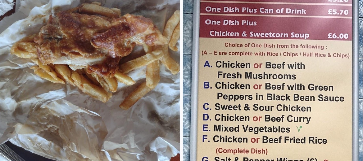 The Clover specializes in fish and chips along with a variety of Chinese dishes, offering a delicious and diverse menu.
